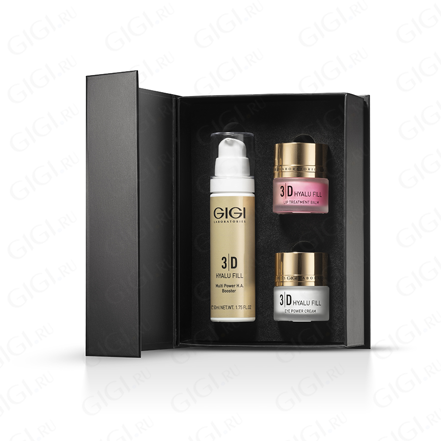 Состоит из: 3D HYALU FILL сыворотки 50мл, Крема для области вокруг глаз 20мл и Бальзама для губ 20мл.